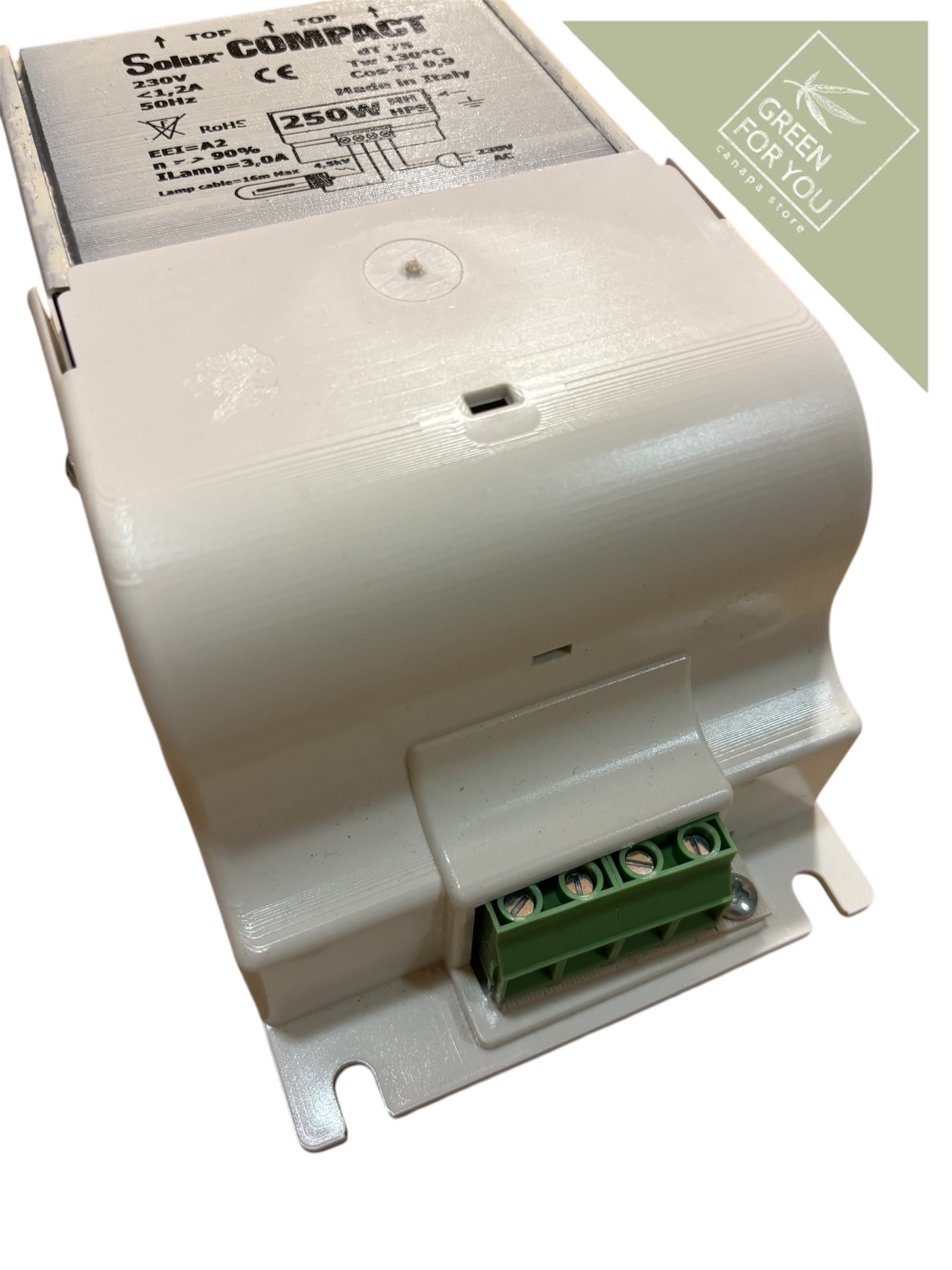 Il sistema accende lampade/bulbi HPS e MH e Agro. Si collega facilmente alla rete elettrica attraverso morsetti a vite inclusi. E’ dotato di protezione termica che blocca il passaggio della corrente in caso di sovraccarico, cortocircuito, funzionamento anomalo, effetto raddrizzante, ecc..
